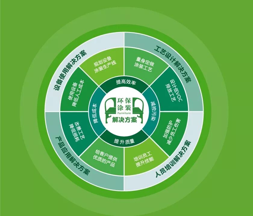 面对家具企业在“油改水”进程中遇到的难题:设备昂贵、生产效率低、设备与涂料产品配合性能差、三废处理等问题,不少涂料企业撇开单纯卖产品的运营模式,主推涂装解决方案,协助家具木器企业成功实现“油改水”计划,帮助企业向环保化和机械化、智能化升级转型。这也给不少陷于“油改水”困境中的家具企业带来了实实在在的帮助。